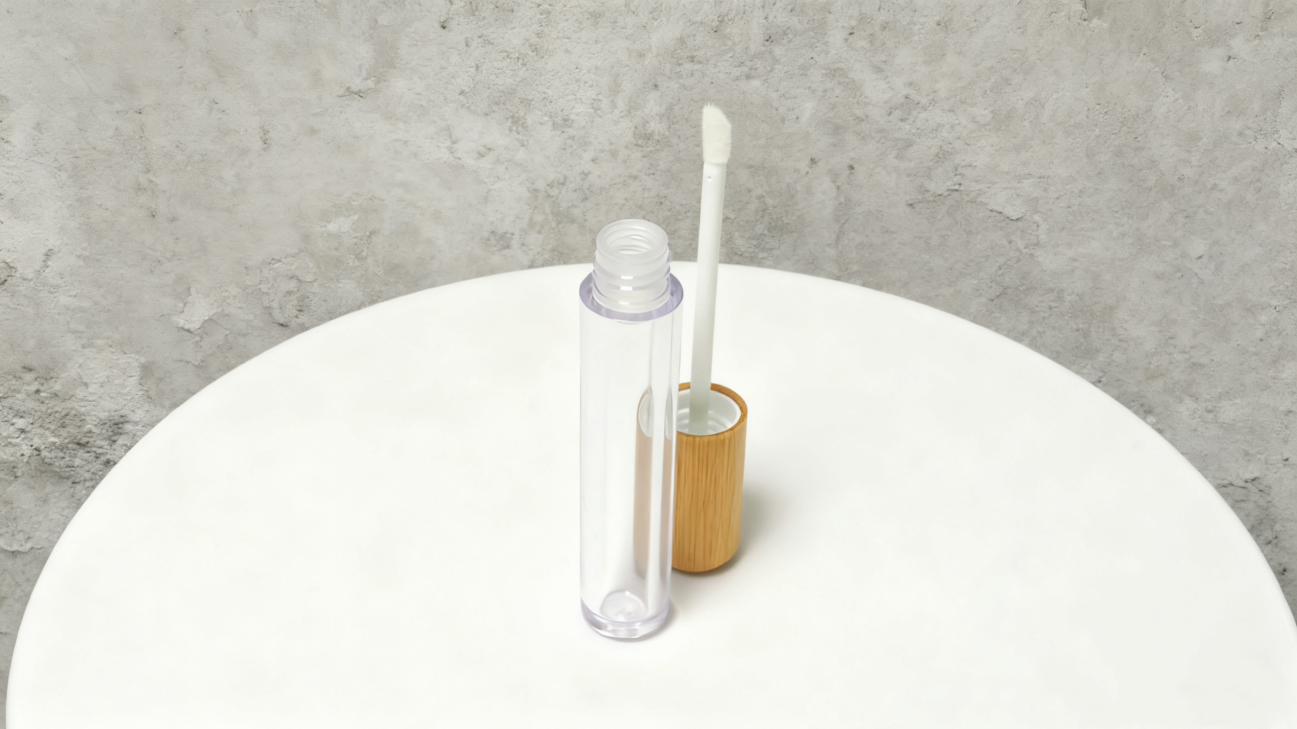 Brand-Ready Aesthetic: The transparency of plastic meets the warmth of wood. Perfect for color cosmetics.